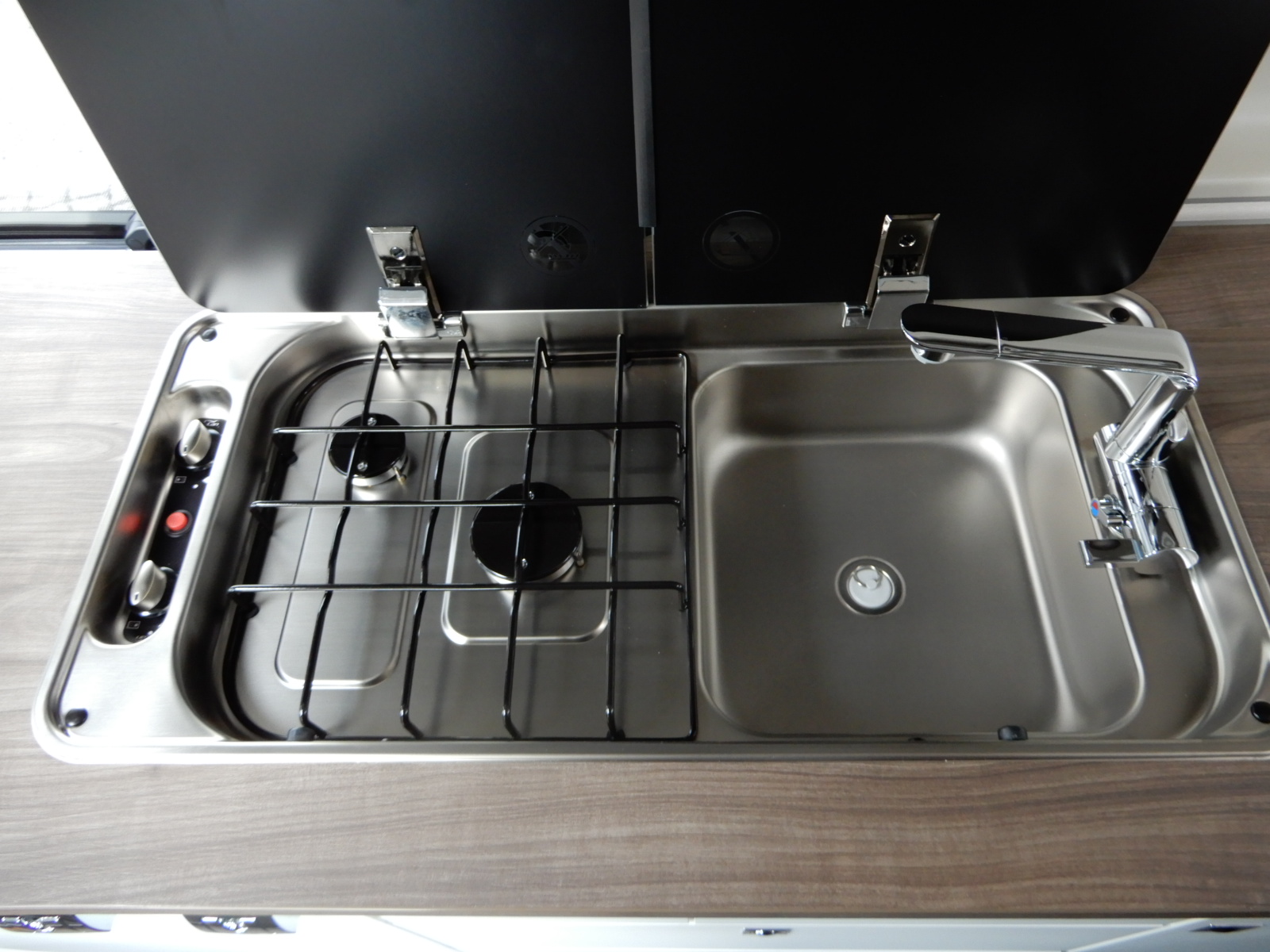- Plynový vařič se 2 hořáky a krytem, elektr. zapalování
