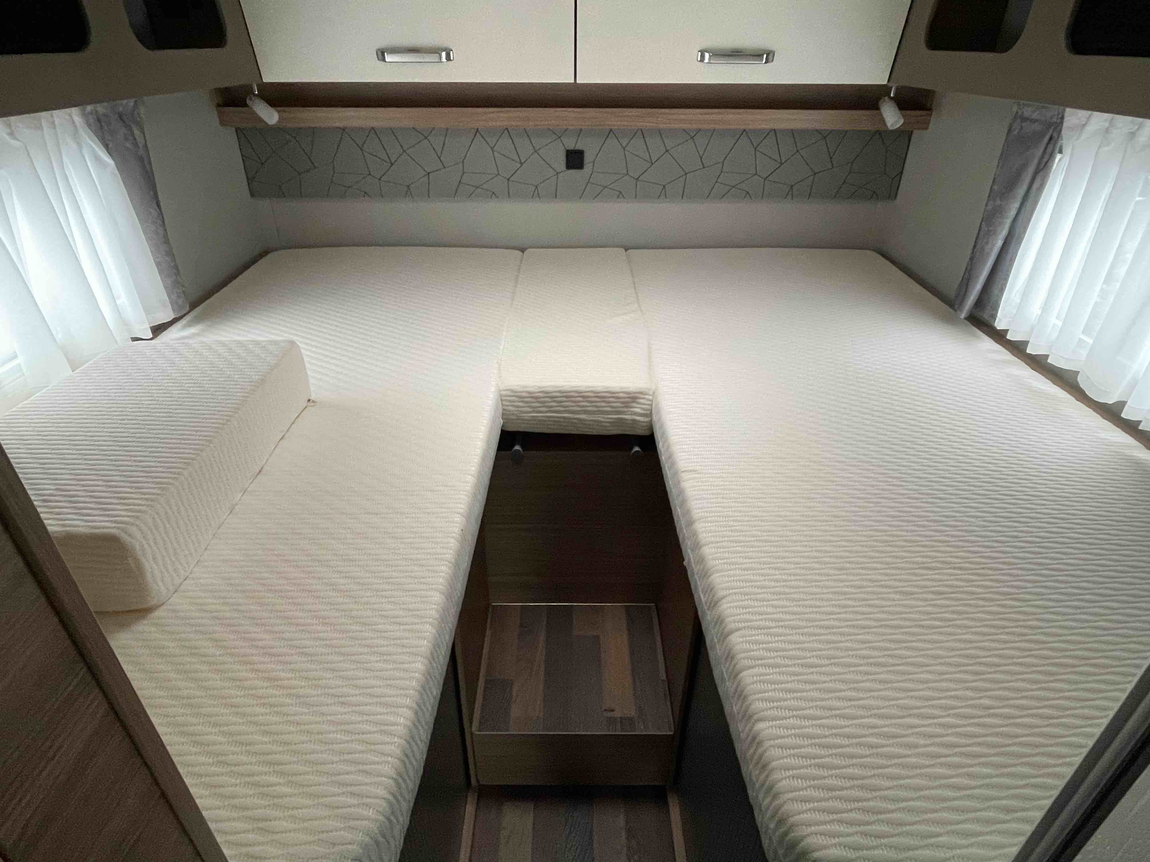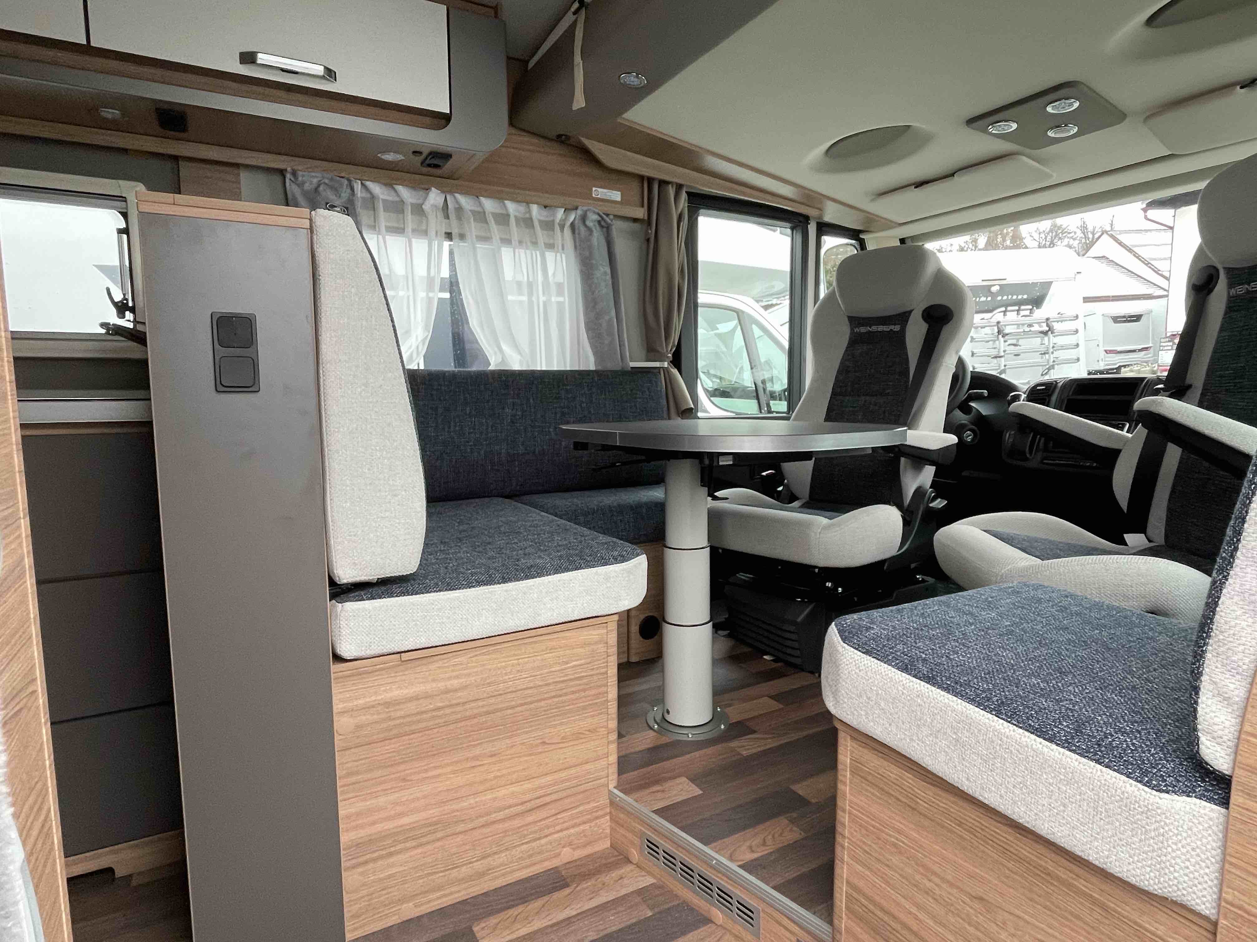 Izolovaná a vyhřívaná odpadní nádrž, Zatemnění předních a bočních oken kabiny, Vysoce kvalitní na míru šité potahy sedadel v kabině, Střešní okno 70x50 nad jídelním nad jídelním stolem