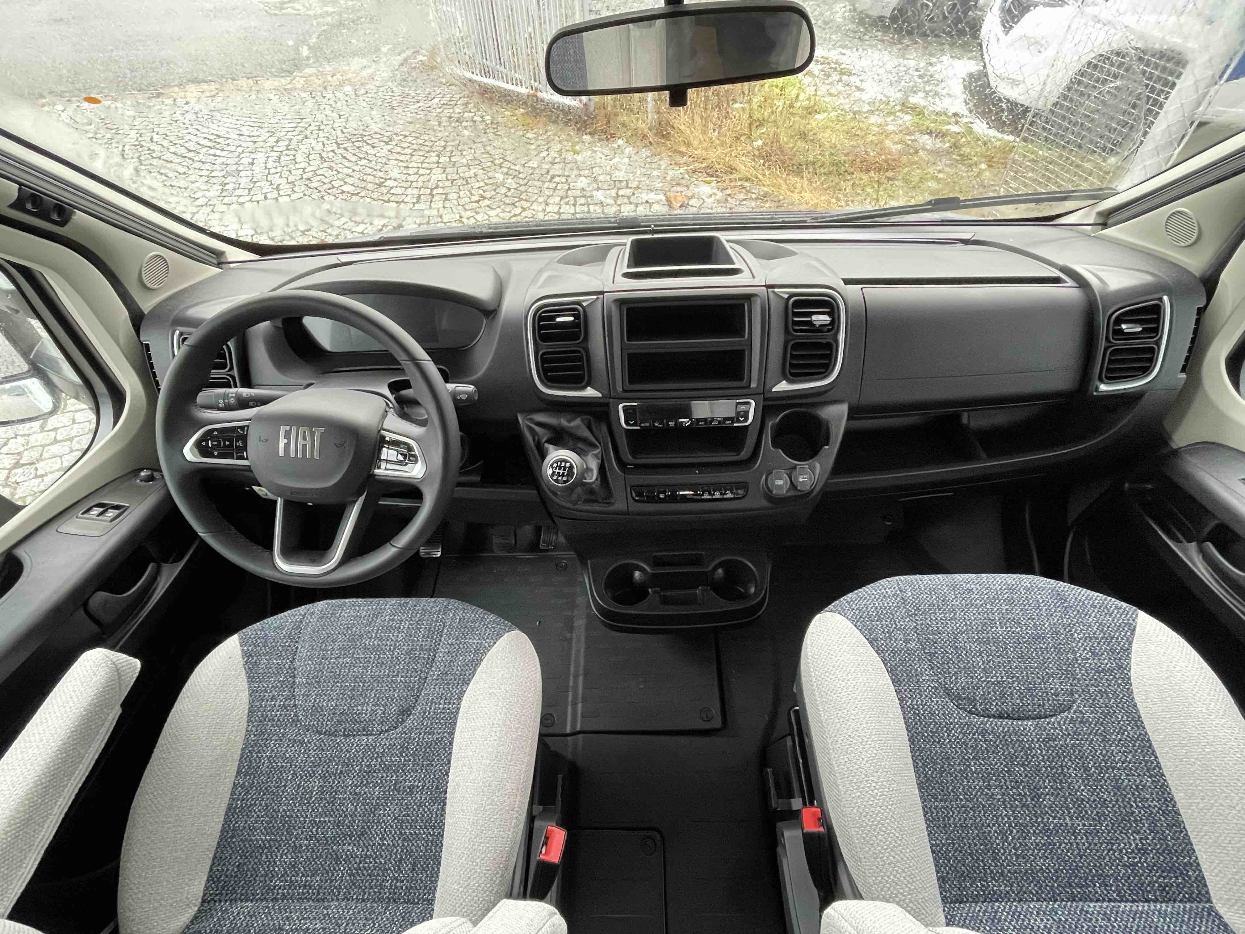FIAT Paket:Elektricky nastavitelná a vyhřívaná vnější zpětná zrcátka, Otočná sedadla vkabině, Nastavení výšky sedadla spolujezdce, Multifunkční volant, Originální kapitánská sedadla FIAT s loketními opěrkami, Opláštění sedacího boxu pro sedadla kabiny, Traction+ včetně asistenta pro sjíždění kopce, Příprava na multimédia